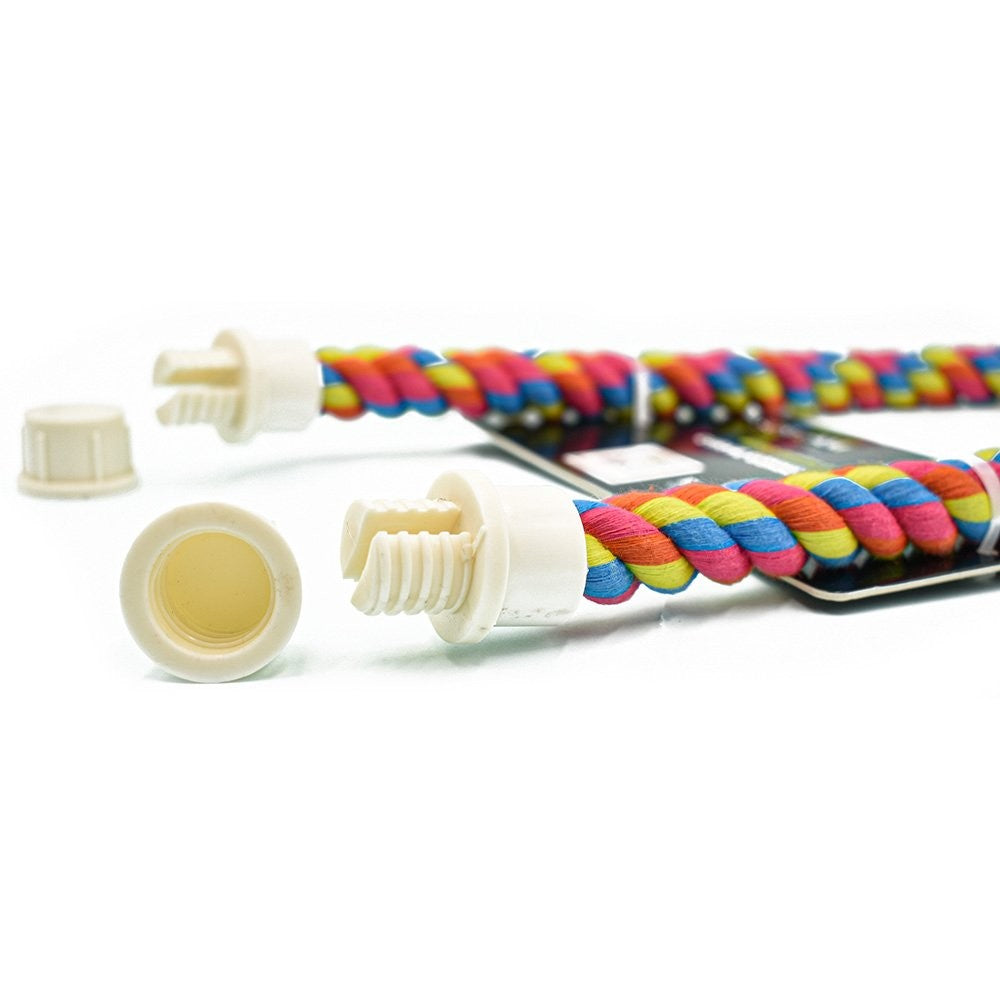 This colourful Bird Rope Perch Screams fun and gives your bird the freedom to do that at home! Promote healthy activity for birds with this multi-coloured, sturdy cotton Poly-Rope Perch. Endless shapes can be made with this perch - change the Shape as often as you would like, or have multiple perches in the cage!
