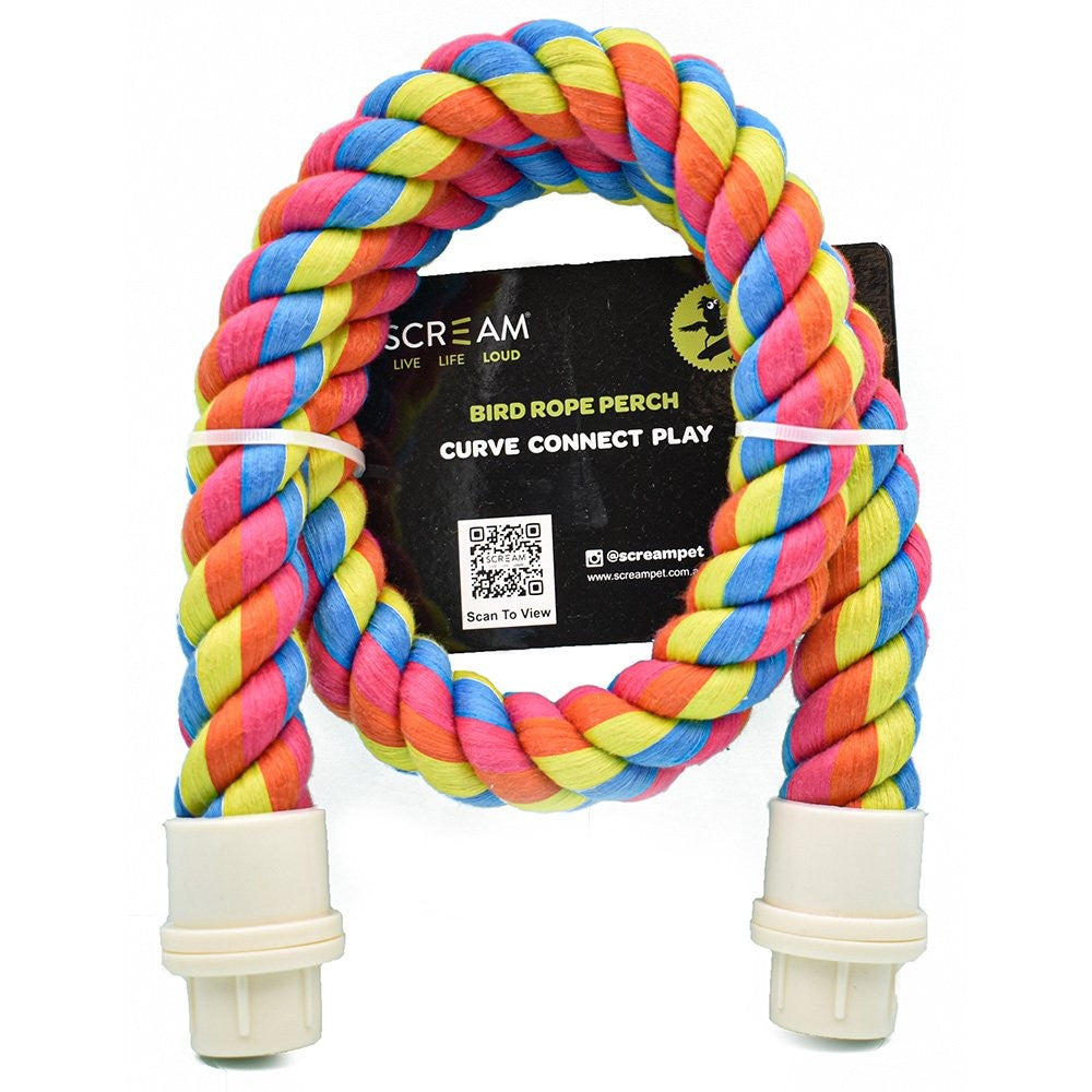 This colourful Bird Rope Perch Screams fun and gives your bird the freedom to do that at home! Promote healthy activity for birds with this multi-coloured, sturdy cotton Poly-Rope Perch. Endless shapes can be made with this perch - change the Shape as often as you would like, or have multiple perches in the cage!