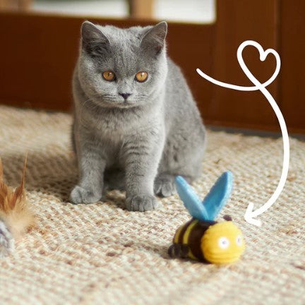 I’m not kitten around… this noisy cat toy really is the bee’s knees! Not only has it got a cute plush design, but it even has a special vibrating feature that keeps me feline entertained, mentally alert, and ready to release my inner tiger.