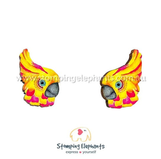 STOMPING ELEPHANTS COCKATOO BY KYLIE FERRIDAY ART EARRINGS