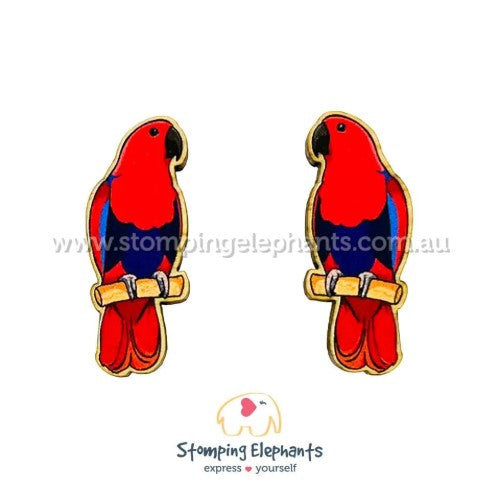 Our red eclectus studs bring a fiery burst of brilliance to your look—perfect for those who love bold birds with personality.