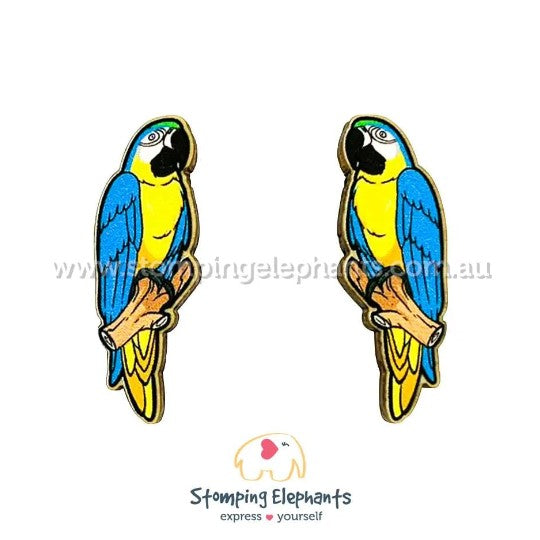 STOMPING ELEPHANTS MACAW BLUE EARRINGS