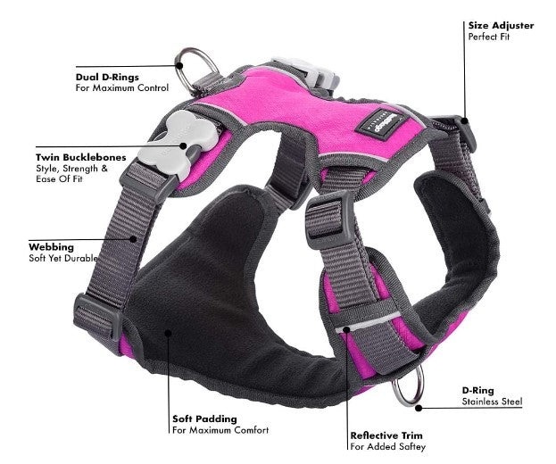 RED DINGO PADDED HARNESS HOT PINK LARGE