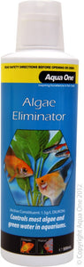Aqua One Algae Eliminator effectively controls many algae common to freshwater aquariums and ornamental fish ponds. Kills growing algae and prevents algae from recurring.