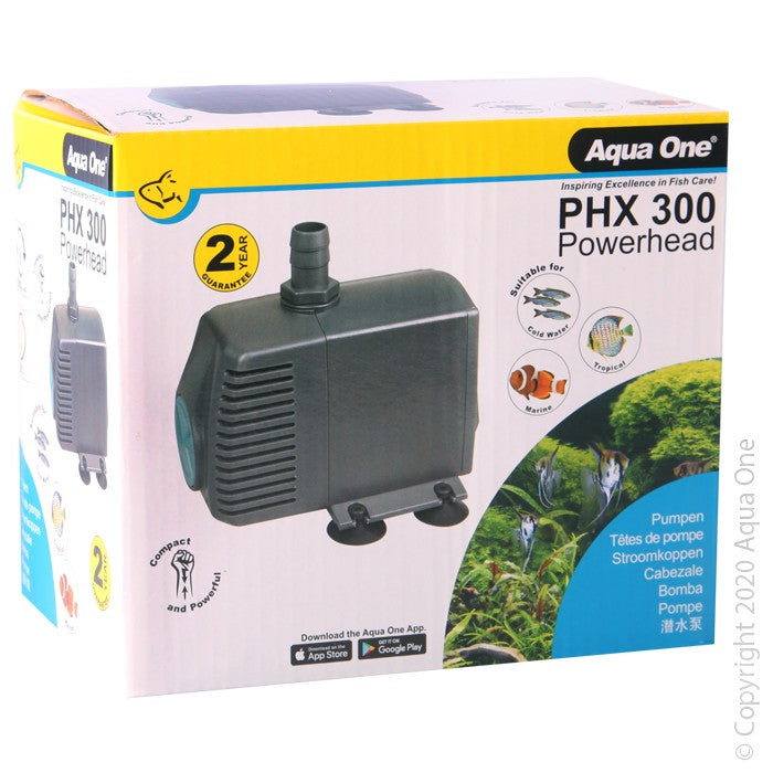 Aqua One PHX Powerheads provide circulation and aeration in freshwater or marine aquariums. The PHX Powerheads are fully submersible and will support your aquarium with an improved oxygen-rich environment.