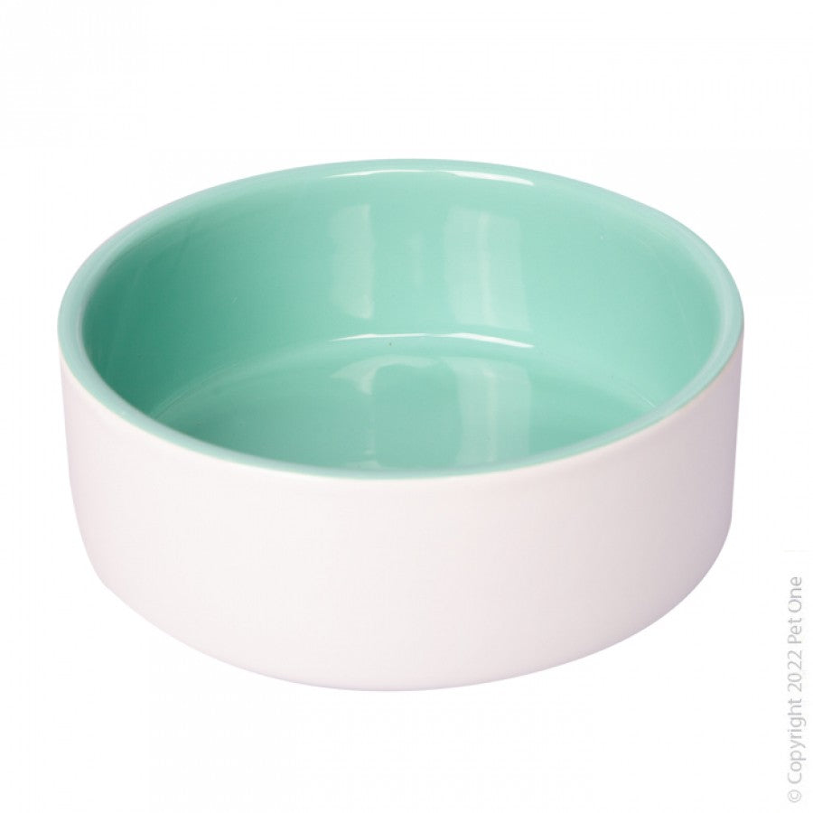 PET ONE CERAMIC PET BOWL GREEN/WHITE 22.5CM DIAMETER 2200ML