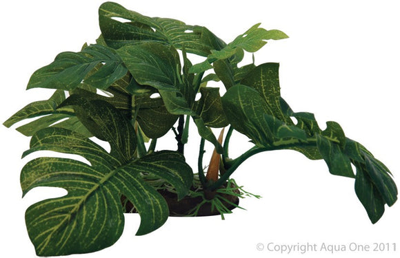 AQUA ONE SILK PLANT LARGE GREEN LEAF ON ROCK MEDIUM