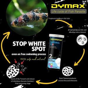 Dymax Natural Rid Non-Chemical Anti-White Spot is designed to treat fish with sensitive aquatic life such as shrimps, snails, invertebrates, and even aquatic plants as it is formulated with fully natural ingredients. This effectively removes Protozoal parasites such as Ichthyophthrius multifiliis, Ambiphyra, Chilodonella, Ichthyoboda, Terahymena, Trichodina, etc.