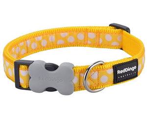 RED DINGO DOG COLLAR WHITE SPOTS ON YELLOW 25MM