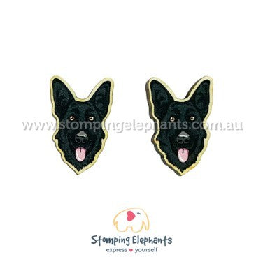 STOMPING ELEPHANTS BLACK GERMAN SHEPHERD EARRINGS (XL STUD)