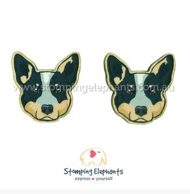 STOMPING ELEPHANTS BLUE CATTLE DOG EARRINGS (LARGE STUD)
