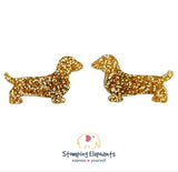 STOMPING ELEPHANTS GOLD GLITTER DACHSHUND EARRINGS (XXXX-LARGE STUD)