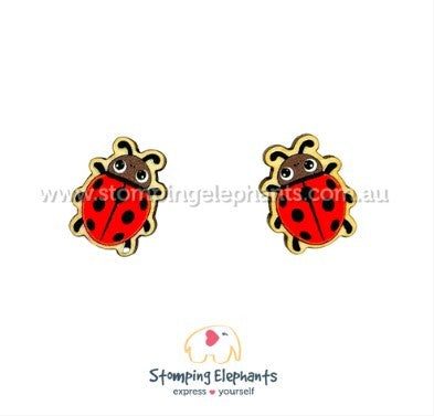 STOMPING ELEPHANTS LADYBUG EARRINGS (MEDIUM STUD)