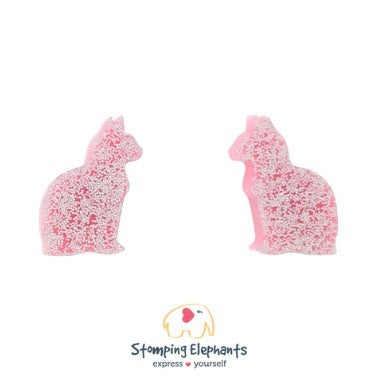 STOMPING ELEPHANTS PINK GLITTER CATS EARRINGS (LARGE STUD)