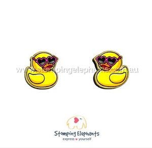 STOMPING ELEPHANTS RUBBER DUCKY WITH SUNGLASSES EARRINGS (SMALL STUD)