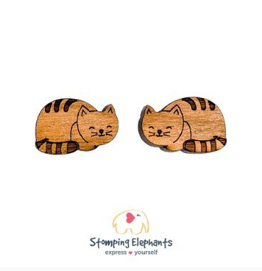 STOMPING ELEPHANTS SLEEPING CAT EARRINGS (LARGE STUD)