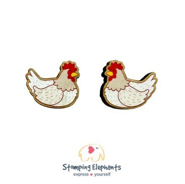 STOMPING ELEPHANTS WHITE CHICKEN EARRINGS (LARGE STUD)